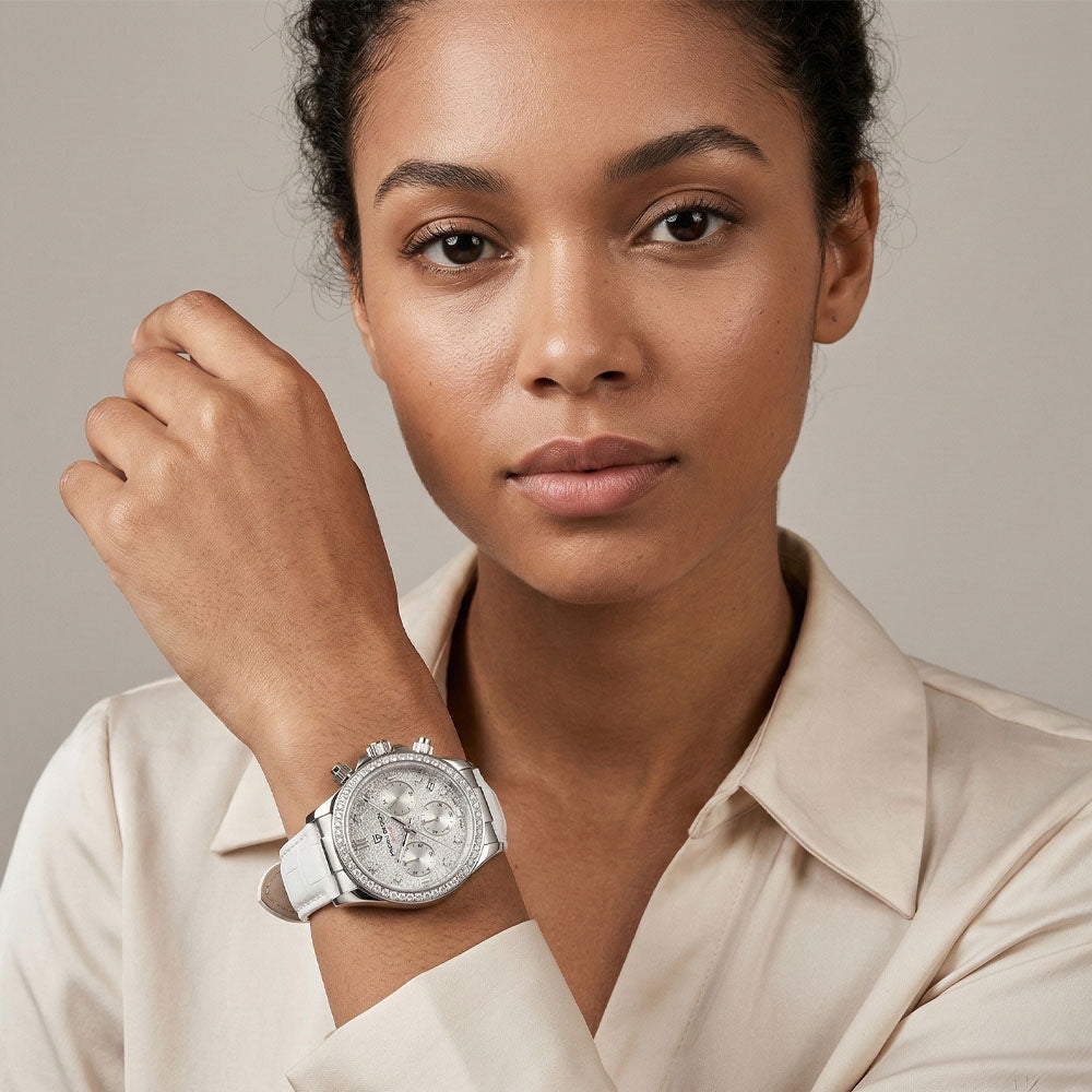 Diese elegante Damenuhr kombiniert sportliches Design mit zeitloser Eleganz und ist das perfekte Accessoire, um Ihrem Look das gewisse Etwas zu verleihen. Ihr markantes Design und ihr einzigartiger Stil sorgen dafür, dass sie auffällt und einen bleibenden Eindruck hinterlässt. Dank Wasserdichtigkeit und präzisem Quarzwerk ist sie gleichzeitig stilvoll und praktisch.