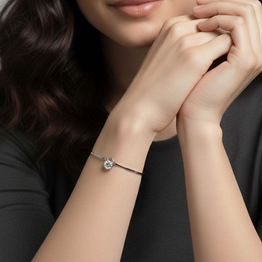 Modernes Armband aus Sterlingsilber mit einem funkelnden Steinanhänger. Die feine Schlangenkette legt sich angenehm ums Handgelenk und sorgt für einen stilvollen Ausdruck.
