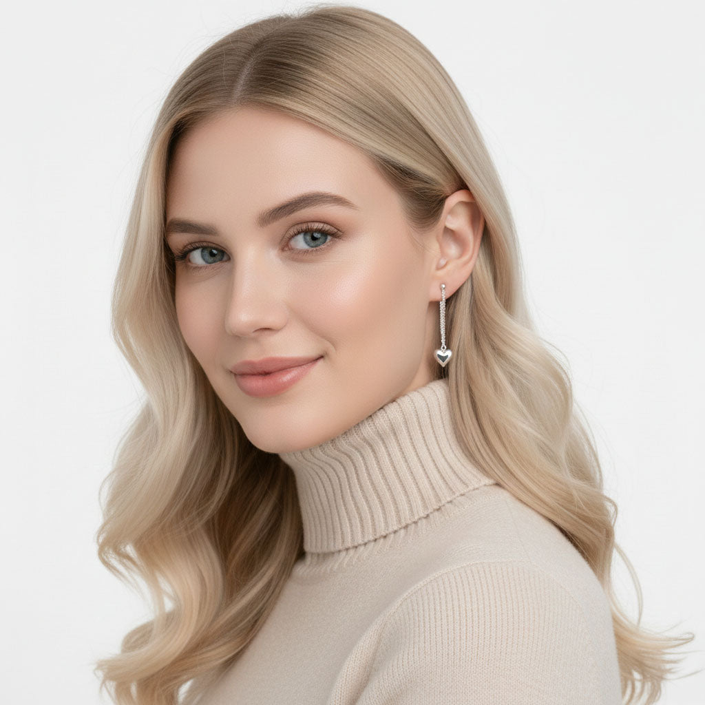 Quastenohrringe mit Herz-Detail aus Sterlingsilber – eine verspielte und moderne Kombination. Sie lassen sich leicht stylen und funktionieren sowohl solo als auch zusammen mit anderen Ohrringen. Ein charmantes Accessoire, das Ihrem Look eine frische Note verleiht.