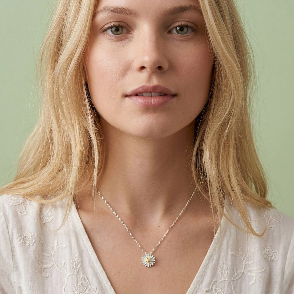 Diese Halskette aus Sterlingsilber greift die natürliche Schönheit des Gänseblümchens auf. Ein schönes Detail für Blumenliebhaber – als Geschenk oder für sich selbst. Kombiniert mit den passenden Stücken aus unserer Daisy Flower Collection entsteht ein stimmiger Look.