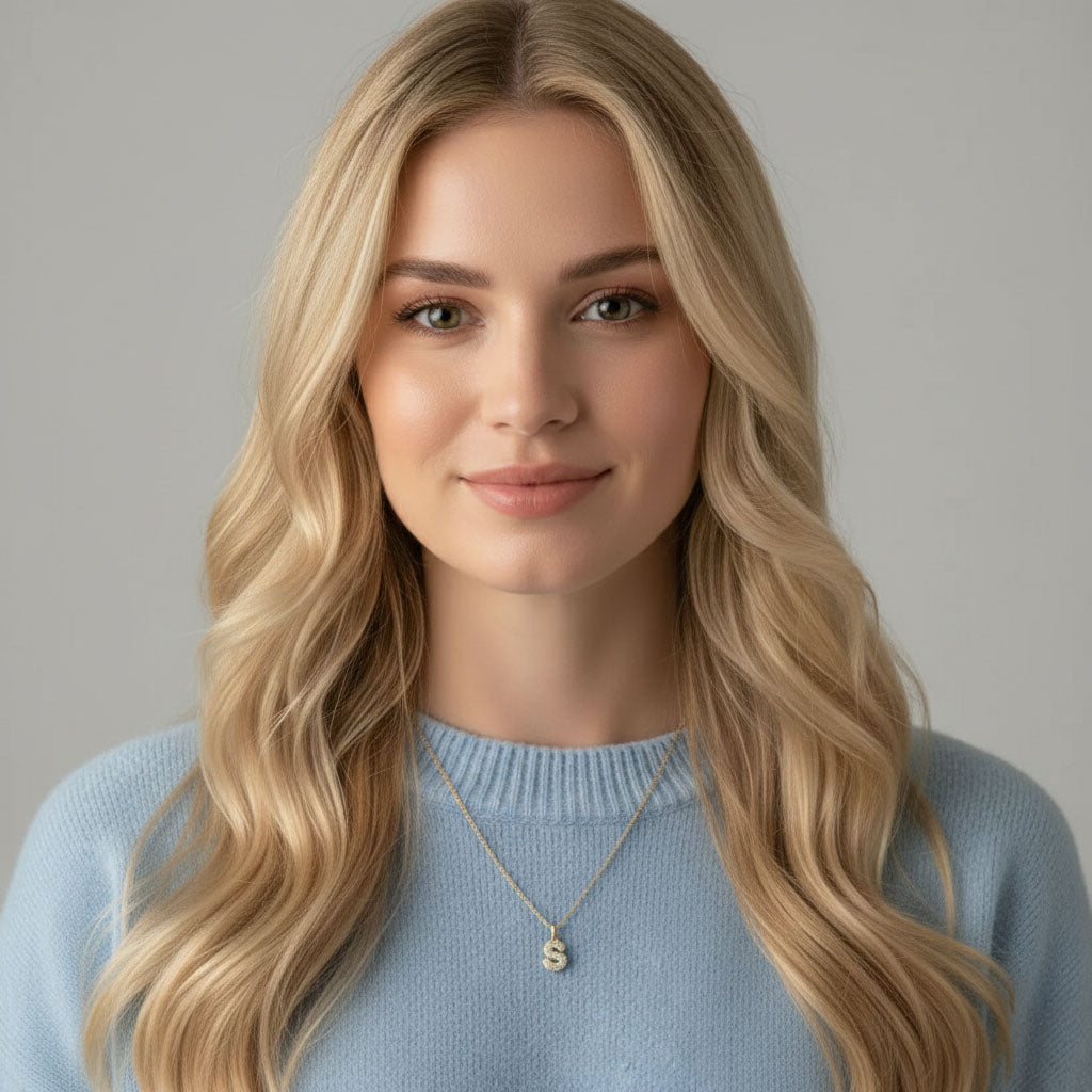 Halskette mit einem chunky Buchstabenanhänger, verziert mit funkelnden Zirkoniasteinen. Die kräftige Form verleiht dem Schmuckstück eine deutliche Charakterstärke – ein echtes Statement-Piece.