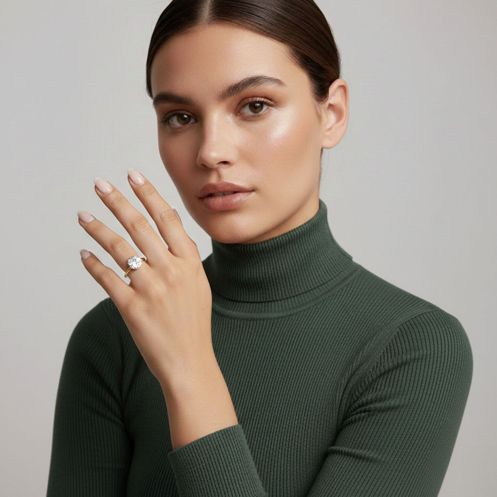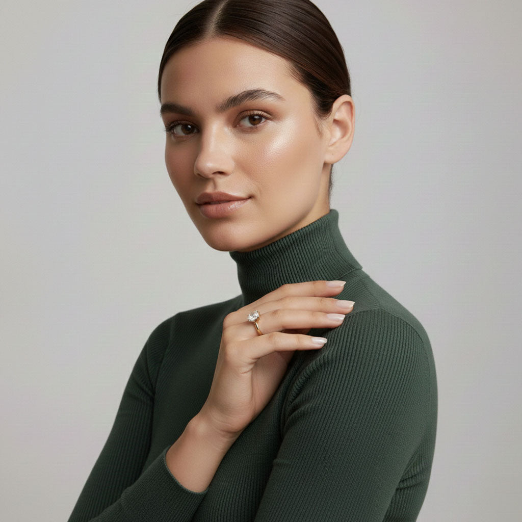 Klassischer Ring mit einem 1-Karat-Moissanit, der Stil und Weiblichkeit ausstrahlt, ohne aufdringlich zu wirken. Der präzise geschliffene Stein sorgt für beeindruckenden Glanz und einen edlen Look, der den Stil auf besondere Weise hervorhebt.