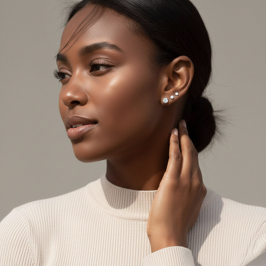 Deze set bestaat uit drie sterling zilveren oorbellen in de maten 2, 3 en 4 mm, elk met een sprankelende zirkonia steen. Perfect om te mixen en matchen, of je nu gaat voor een casual of geklede look. Let op: voor een volledig paar in elke maat zijn twee sets nodig.