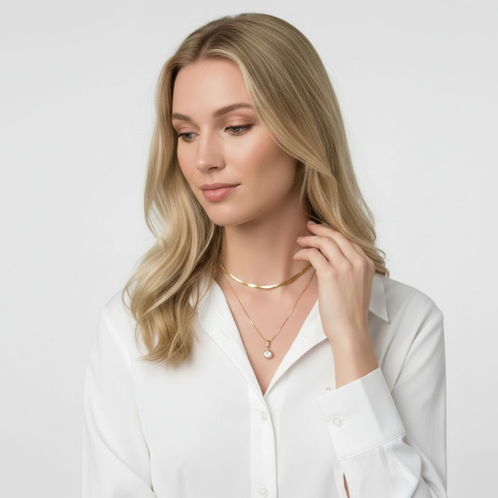 Onze meest exclusieve ketting is gemaakt van hoogwaardig sterling zilver en heeft een fonkelende moissaniet hanger. Met zijn elegante ontwerp en dubbellaagse kettingen voegt het een echte WOW-factor toe aan je stijl. Bovendien kun je het met of zonder de hanger dragen voor veelzijdige looks.