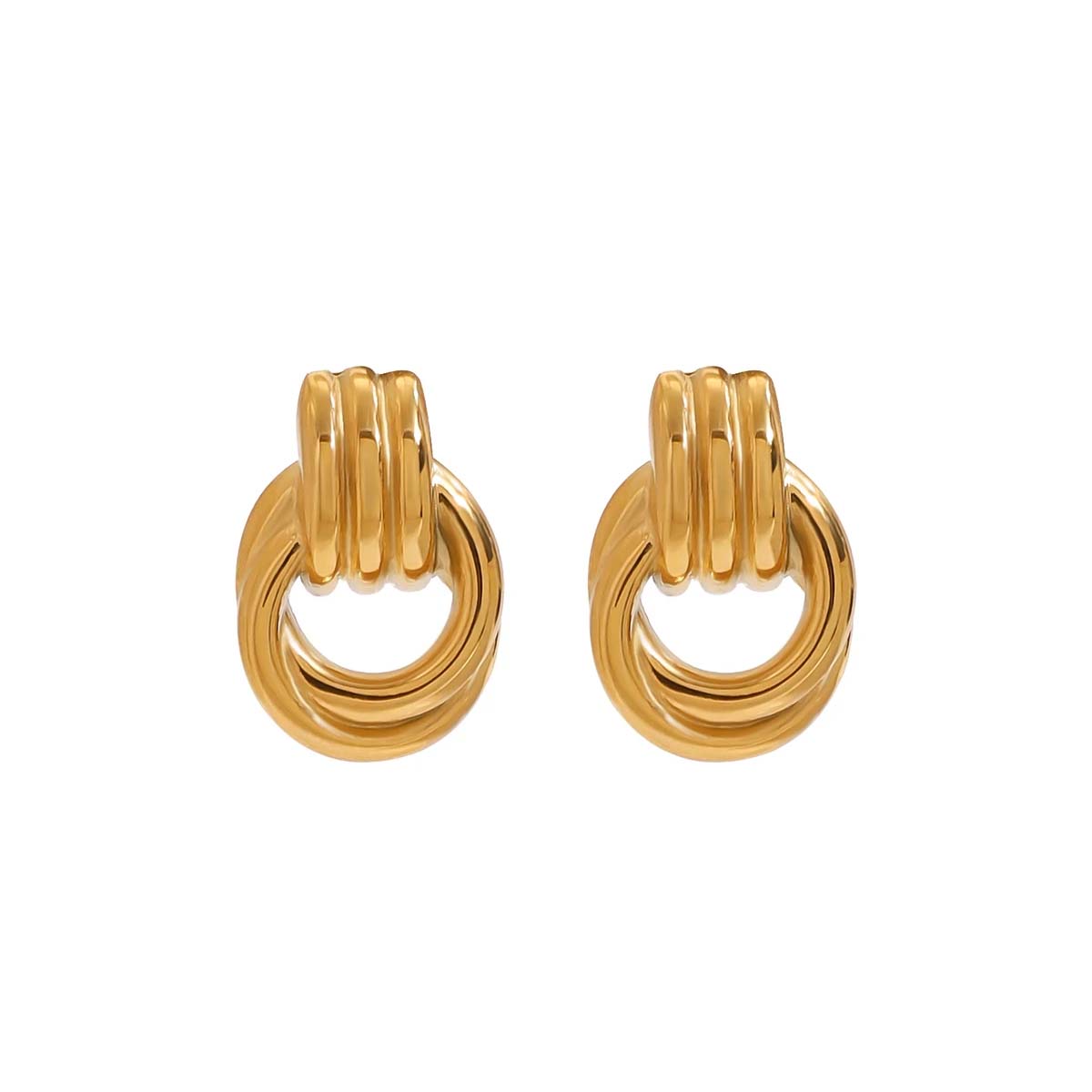 Trendy hoops with a design that combines multiple interwoven rings. Available in both gold tone and a mix of gold and silver for a modern contrast. Made from durable material that retains its shine over time and is comfortable to wear.