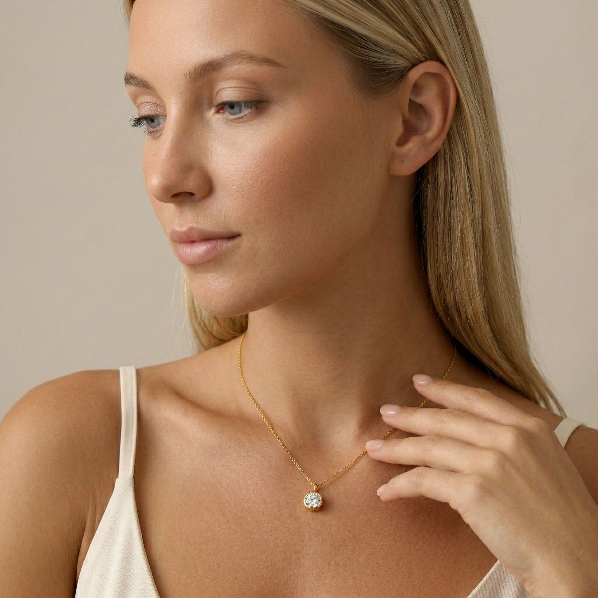 This elegant necklace features a 2-carat moissanite pendant, blending simplicity with exclusivity. The sparkling stone adds a luxurious touch, while the clean design makes it versatile for any event.