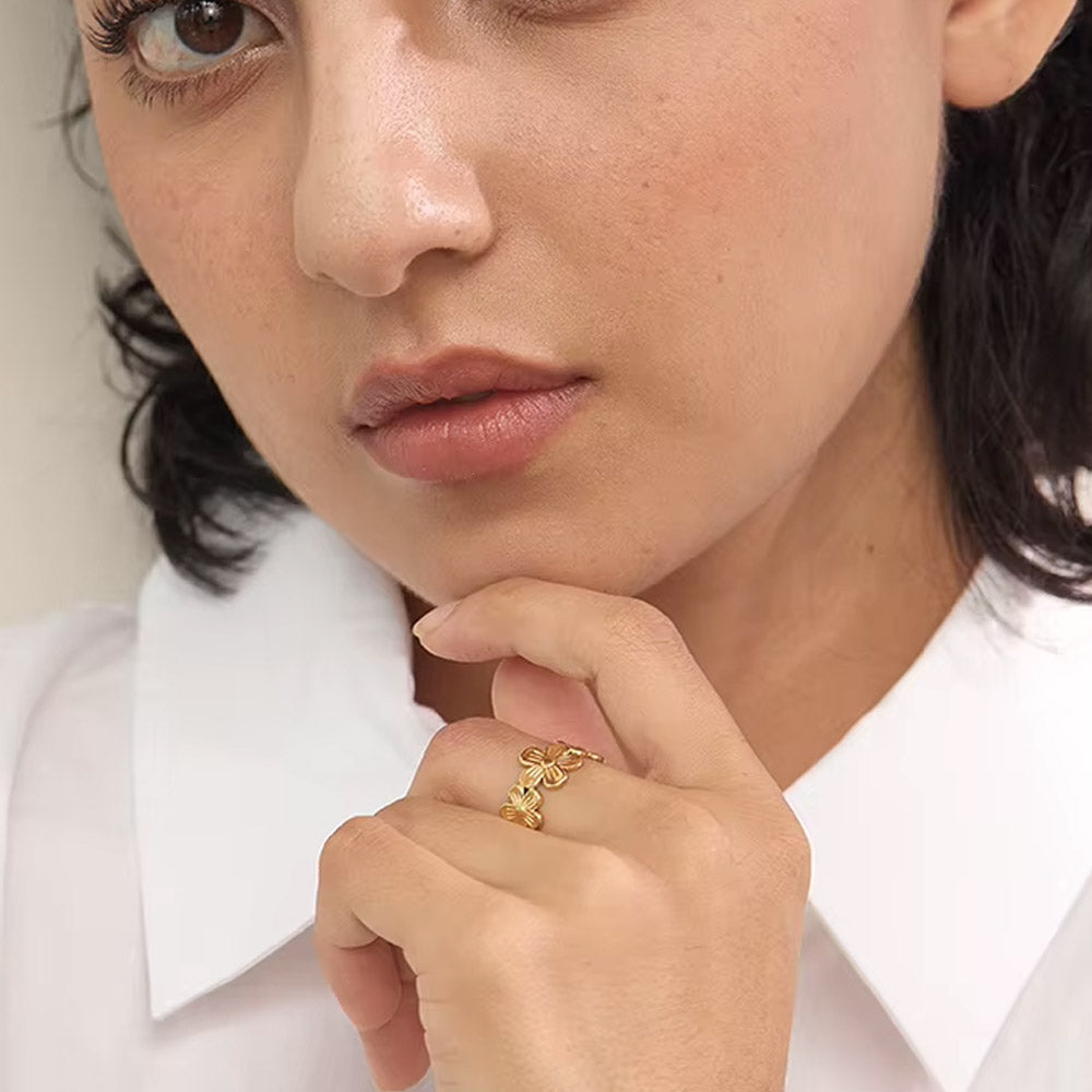 Experience the charm of our unique ring, crafted from sustainable stainless steel and decorated with delicate flowers. Its floral design gives a fresh, seasonal feel, making it a special piece you’ll want to wear again and again!