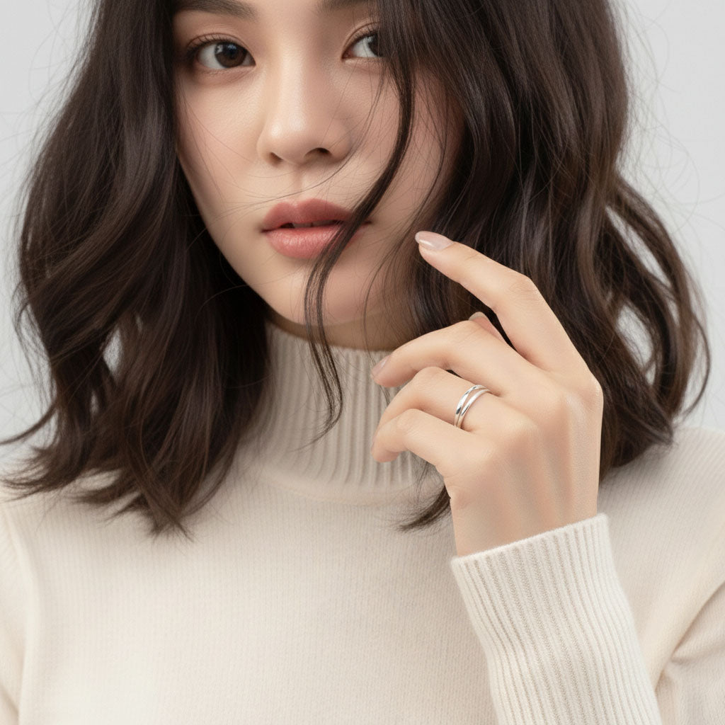 Timeless design meets modern simplicity in this sterling silver ring with double bands. Its clean lines create a refined look that suits every occasion. A piece you’ll reach for time and time again.