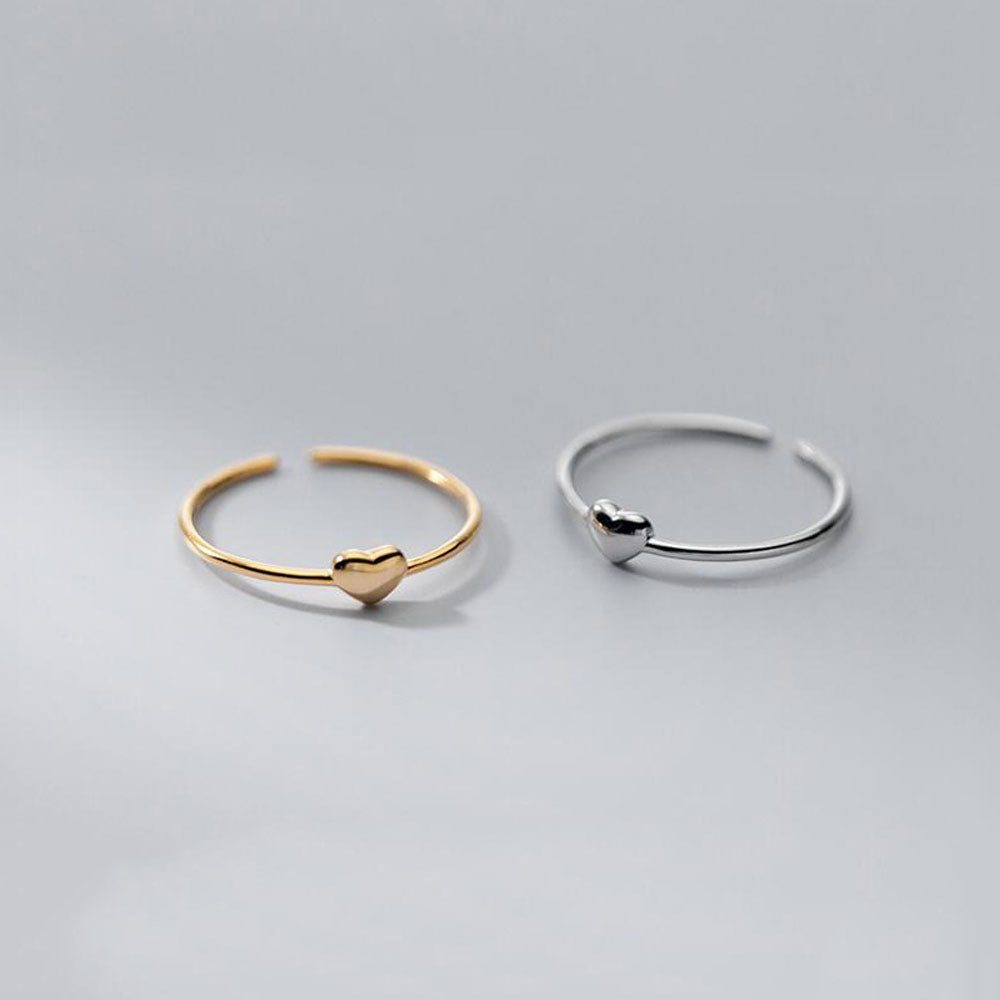Delicate minimalist sterling silver ring with an adjustable opening. Features a charming 0.4 cm heart motif and is available in silver and gold plating. Perfect for adding simple elegance to any outfit.