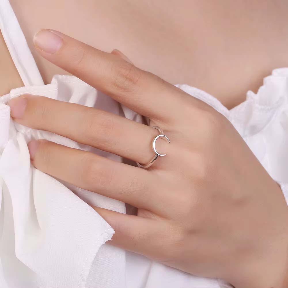 Our trendy sterling silver ring features a minimalist design with an elegant crescent moon shape. It adds a subtle, playful touch to any look. Perfect as a personal accessory or a thoughtful gift for someone special!