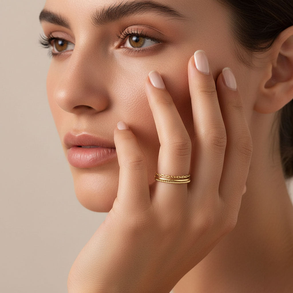 These trendy thin rings come in a set of three, perfect for mixing and matching with your favorite pieces. Ideal for creating a unique style, they add a modern and elegant touch to any look.